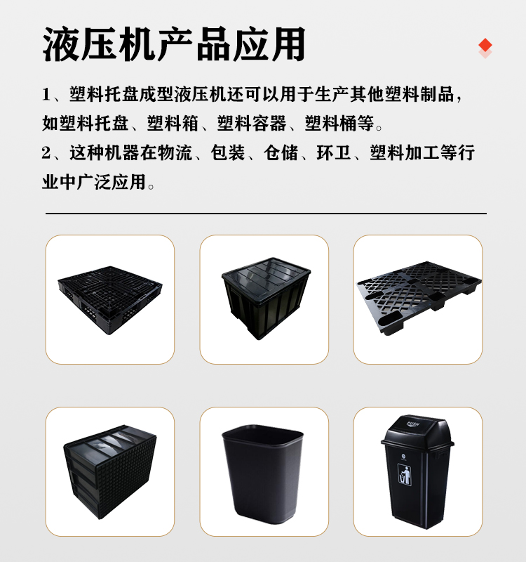 【產品描述】:塑料托盤成型液壓機是一種專門用于生產塑料托盤的設備。它采用液壓系統,通過將熔化的塑料注入模具中,然后施加高壓力進行成型,最終得到塑料托盤產品。這種機器具有高效、精準、穩定的特點,能夠生產出高質量的塑料托盤。 塑料托盤成型液壓機在物流、倉儲、包裝等行業中有著廣泛的應用。塑料托盤是一種常用的物流包裝工具,可以用于存放、運輸和堆放貨物,提高